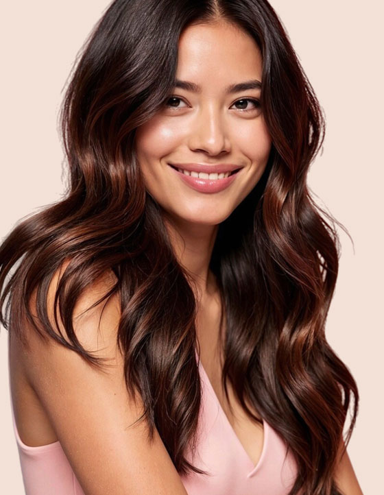 Refined. Silky. Fluid. Asian hair has a compact cuticle layer, giving it a naturally glossy finish that resists frizz and maintains integrity through coloring and styling.